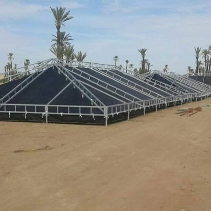 We beschikken over een eigen locatie voor plaatsing van onze tenten in de natuur en s winters in een loods.